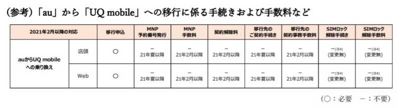 また、auとUQモバイルの間での以降に関して