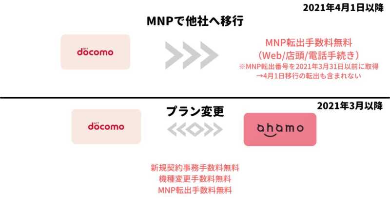 これに関して、契約解除料は旧プランであっても無料、MNP手数料に関しても無料、契約事務手数料に関してはウェブで手続きを行った際に無料(店頭手続きは3,300円(税込))にするとしています。