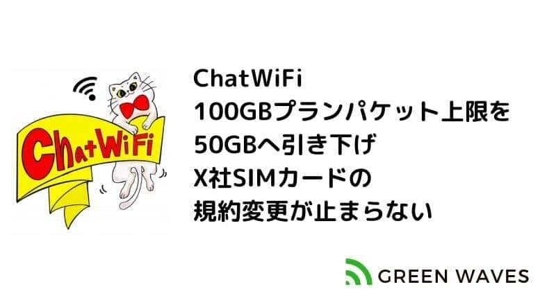 ChatWiFi(チャットワイファイ)既存100GBプランパケット上限を50GBへ引き下げ|X社SIMカードの規約変更が止まらない
