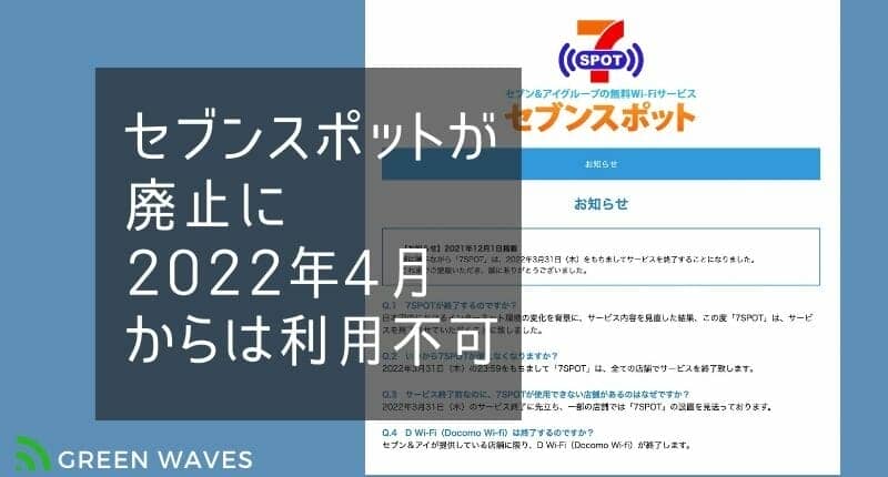 セブンイレブンの無料WiFiサービス「セブンスポット(7SPOT)」が2022年3月31日廃止終了
