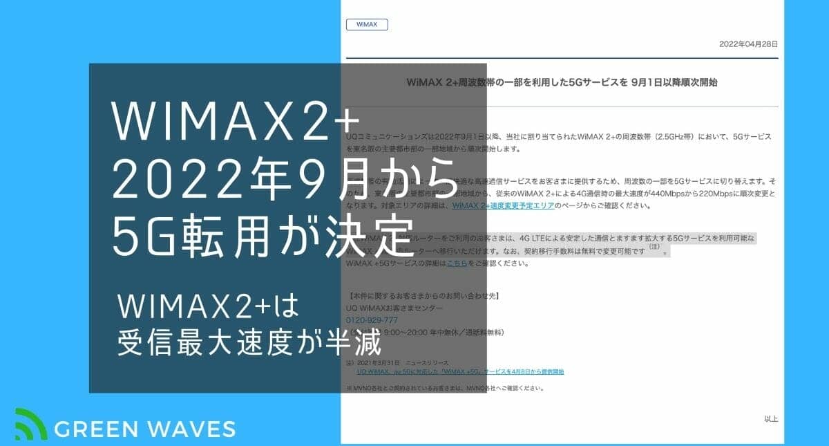 UQ WiMAX、WiMAX2+回線最大速度を440Mbpsから半減することを発表|2022年12月1日から