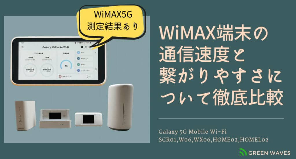 WiMAX2+/+5Gルーター端末(Galaxy 5G Mobile Wi-Fi SCR01,W06,WX06,HOME02,HOMEL02)の通信速度と繋がりやすさについて徹底比較