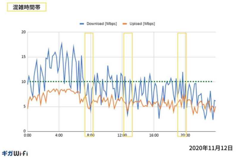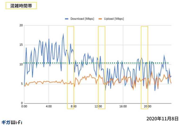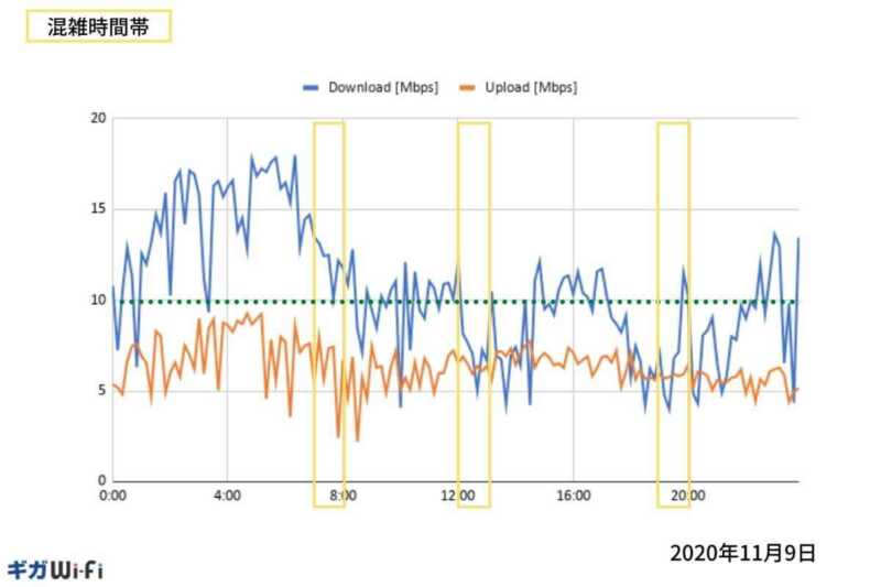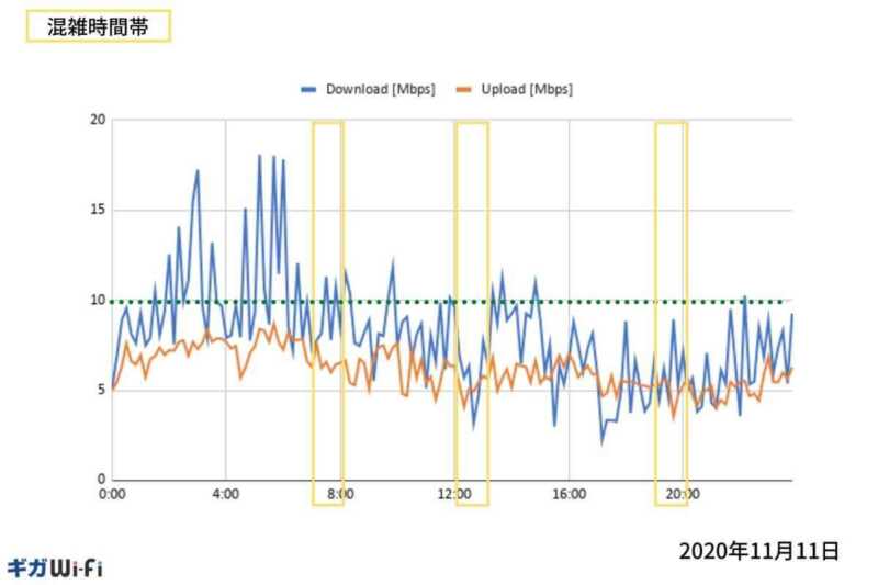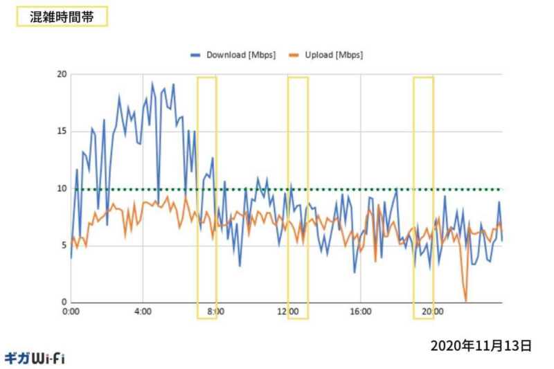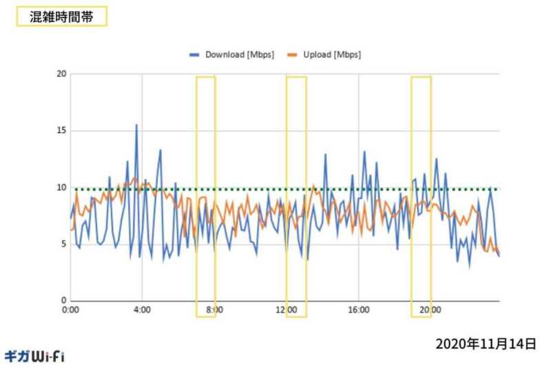 本コンテンツでは、24時間を10分置きに7日間の速度測定結果を掲載しています。