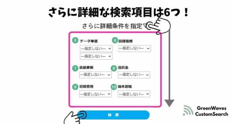 当サイトGreenWavesでは、数あるレンタルWiFiルーターの中からご自身の希望に見合ったサービスを探し出すために「カスタム検索機能」を備えております。