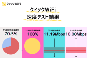 本コンテンツでは、クイックWiFiの24時間を10分置きに7日間の速度測定結果を掲載しています。