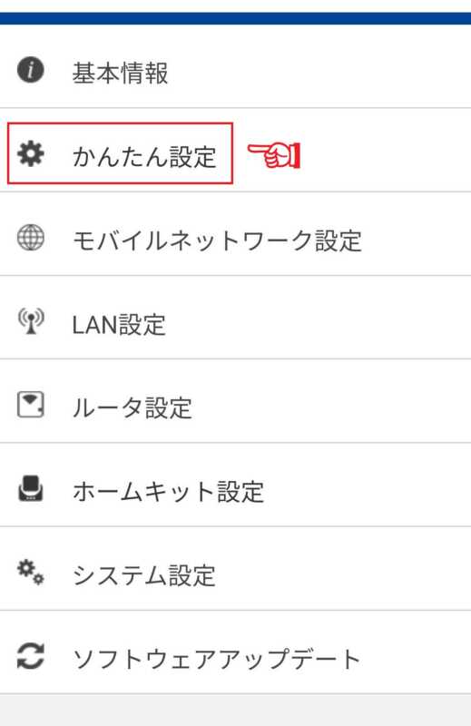 - http://192.168.100.1にアクセスしてかんたん設定をタップ