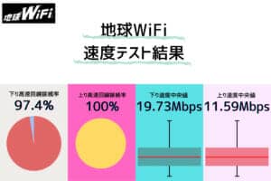 地球WiFiについては、月額3,980円(割引後料金)/月間パケット上限100GBで利用可能となっており、通信速度についても申し分ありません。