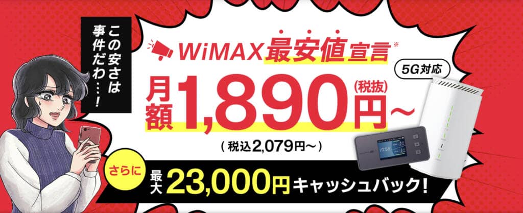 - 月額4,950円(税込)とUQWiMAX(4,950円(税込)/月)と同額