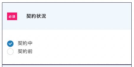 ②下の方にある記入事項の「契約状況」を「契約中」と選択します。