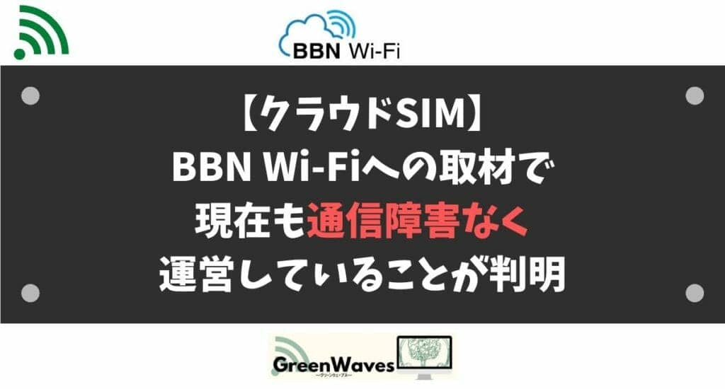 【クラウドSIM】BBN Wi-Fiへの取材により、現在も通信障害なく運営していることが判明